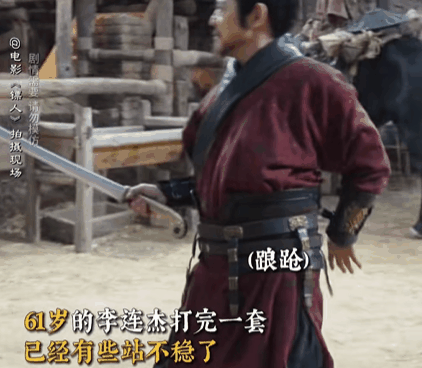 在《镖人》花絮中,吴京、李连杰、张晋这三个年龄加起来160岁的人,在片场打完一套后,因为超负荷,腿都已经直不起来了,却还在咬牙坚持,瘸着腿继续打。