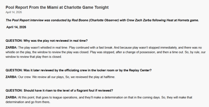 北京时辰4月15日,黄蜂记者罗德-布恩在热火对阵黄蜂赛后对裁判组厚爱东谈主扎尔巴进行采访,说合比赛中有关的争议回合。这个回合出目下第二节,那时拉梅洛-鲍尔(三球)拉到阿德巴约的脚踝,形成阿德巴约腰部受伤离场。裁判那时莫得任何判罚,也莫得回看。扎尔巴恢复了有关的话题——