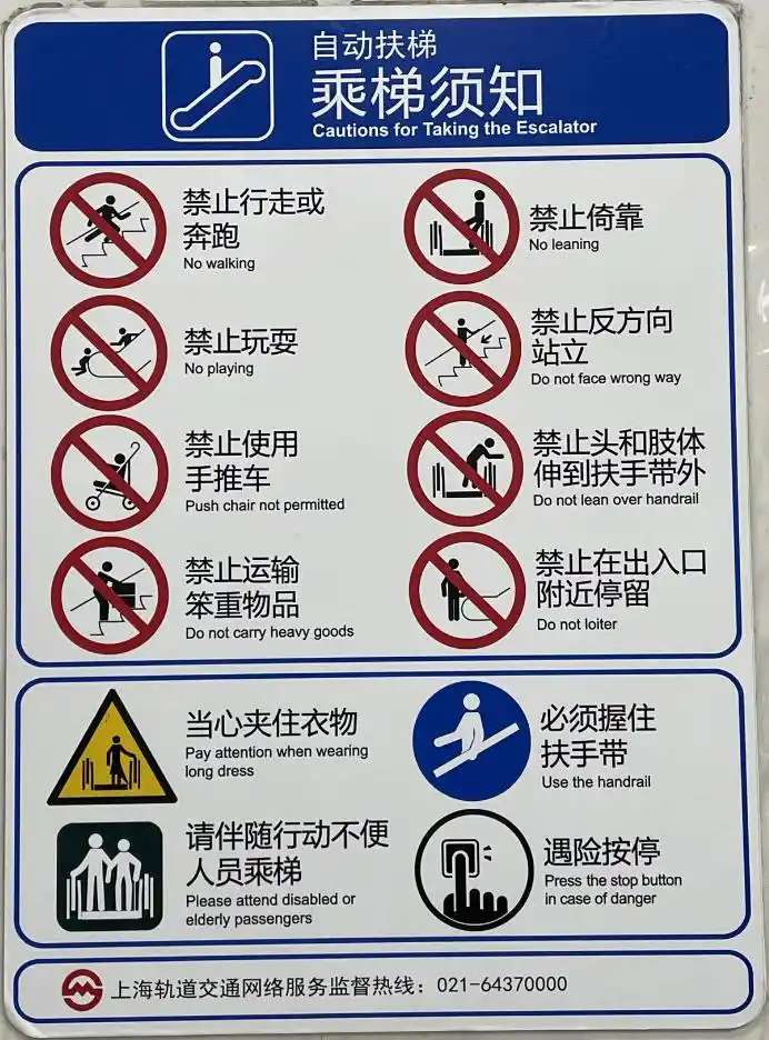 这种无视安全的所谓“斯文”简直一种斯文吗?事实上,由于“左行右立”存在各样短处,早已被多地叫停。连年来,北京、上海、广州、南京等多地已连接取消“左行右立”的概念,转而建议乘坐扶梯时辞谢行走或驱驰。比如北京地铁部分车站的扶梯上出现了傍边并列的“金莲印”,指示乘客并列立正;上海地铁新版乘梯应知已辞谢在运转中的电梯上行走驱驰等。