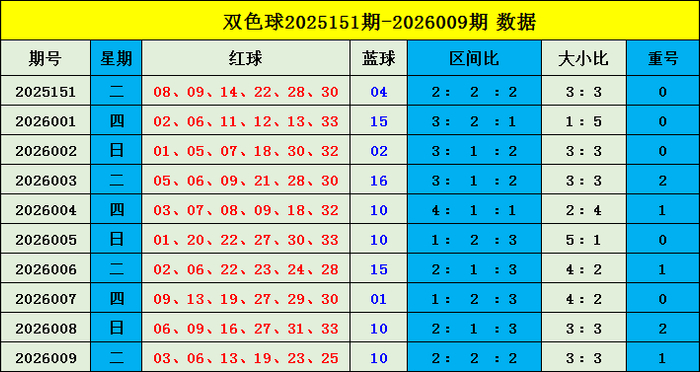 双色球上期开奖号码回顾:红球03 06 13 19 23 25;蓝球10,红球号码三区比为2:2:2,大小比为3:3。蓝球开出大偶数10。