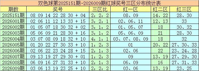 双色球第2026009期开出奖号为:03、06、13、19、23、25+10,其中红球三区比为2:2:2,蓝球开出偶数、大号、1路号码。