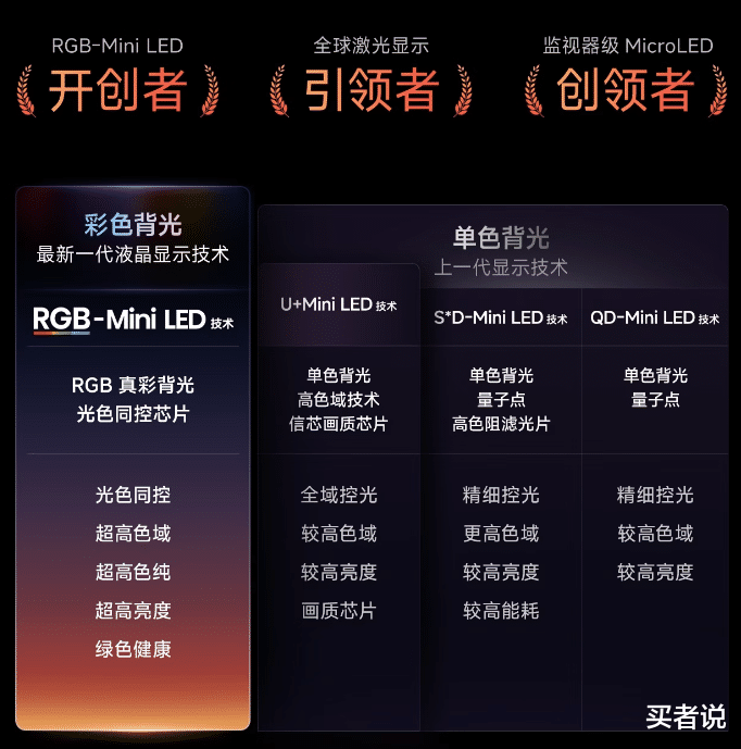 而海信RGB-MiniLED则是对光源进行了底层重构。