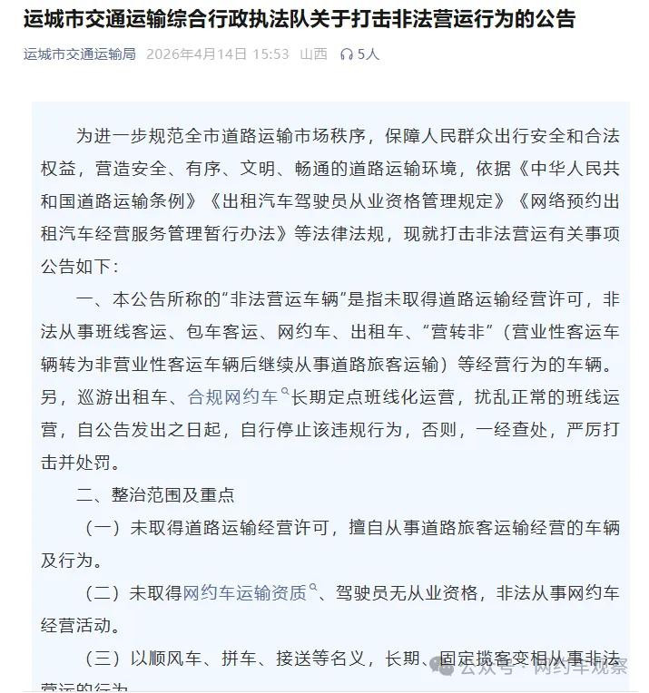 重心整治无正当营运天禀、平台非法派单活动