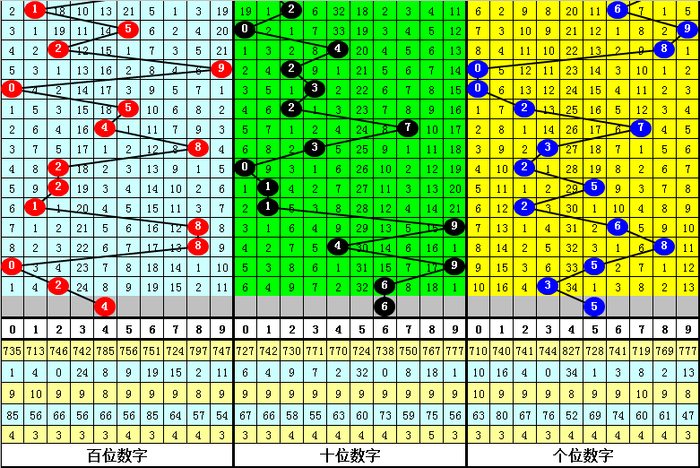 十位走势:最近10期开出范围在0-9区段,跨度为10点,出号比较分散,上期出现号码6,下降3点,本期注意开出重号。另外,最近10期该位奇偶比为6:4,偶数出现较少,本期看好偶数出现,参考号码6。