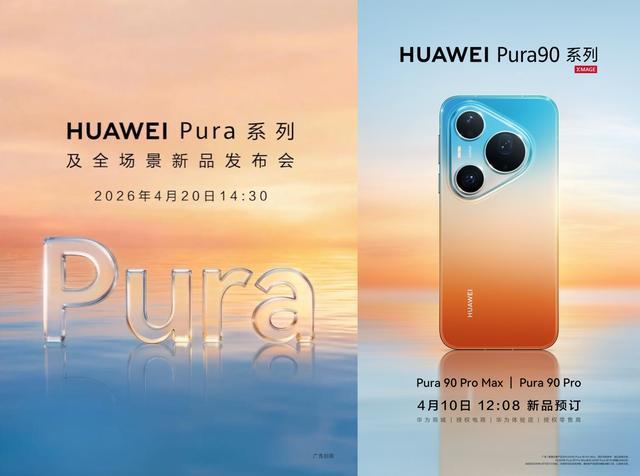 华为Pura90系列霎时官宣,发布本事为2026年4月20日14:00,此次仅发布两款机型,它们的名字叫华为Pura90 Pro和华为Pura90 Pro Max。当今这两款新机依然真贵开启预约,同期放出了还有官方渲染图和存储版块,此次的配色主打渐变和高弥漫度,以下是该系列机型的详备实质。