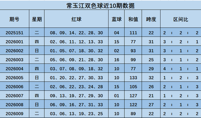 米兰app官方网站 010期常玉江双色球预测奖号:跨度推荐