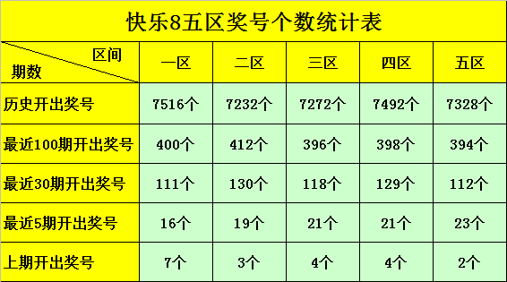 最近100期该区开出398个奖号,表现最热的号码为:62,开出了38次,表现最冷的号码为:51、56、58,出现19次;