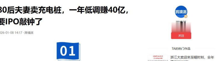 80后佳偶卖充电桩,一年低调赚40亿,要IPO敲钟了 2026-01-08 14:17·跨境派